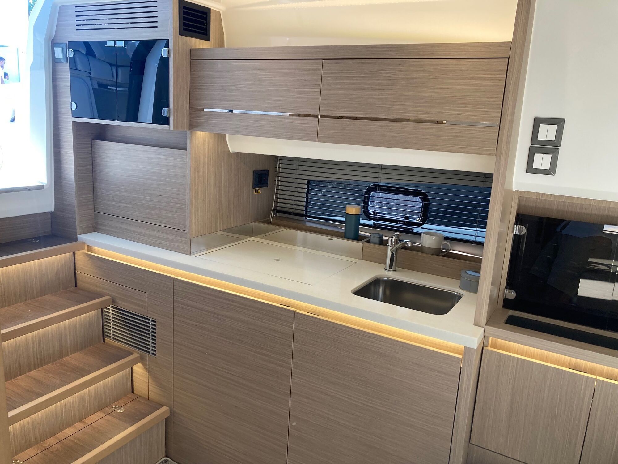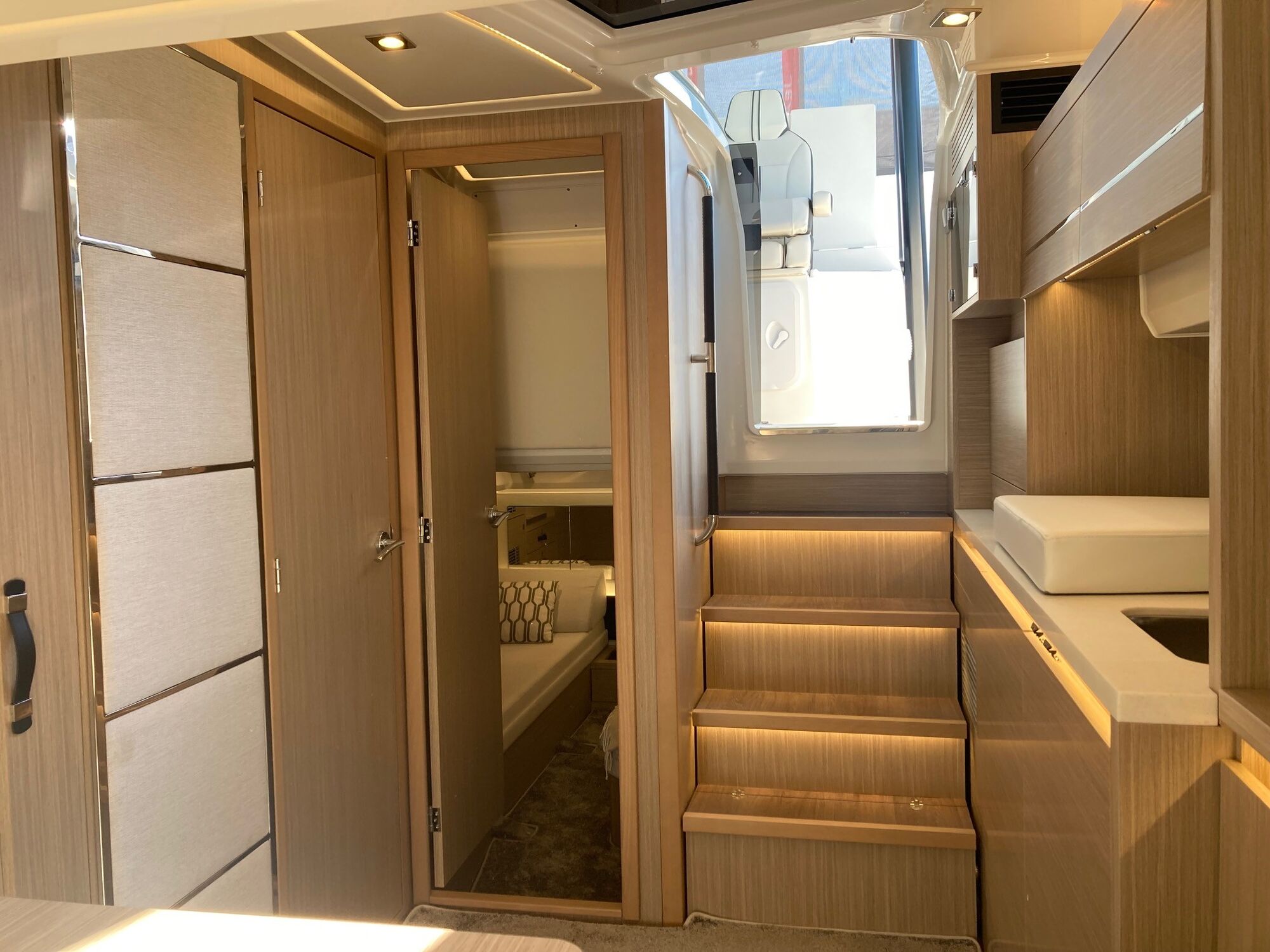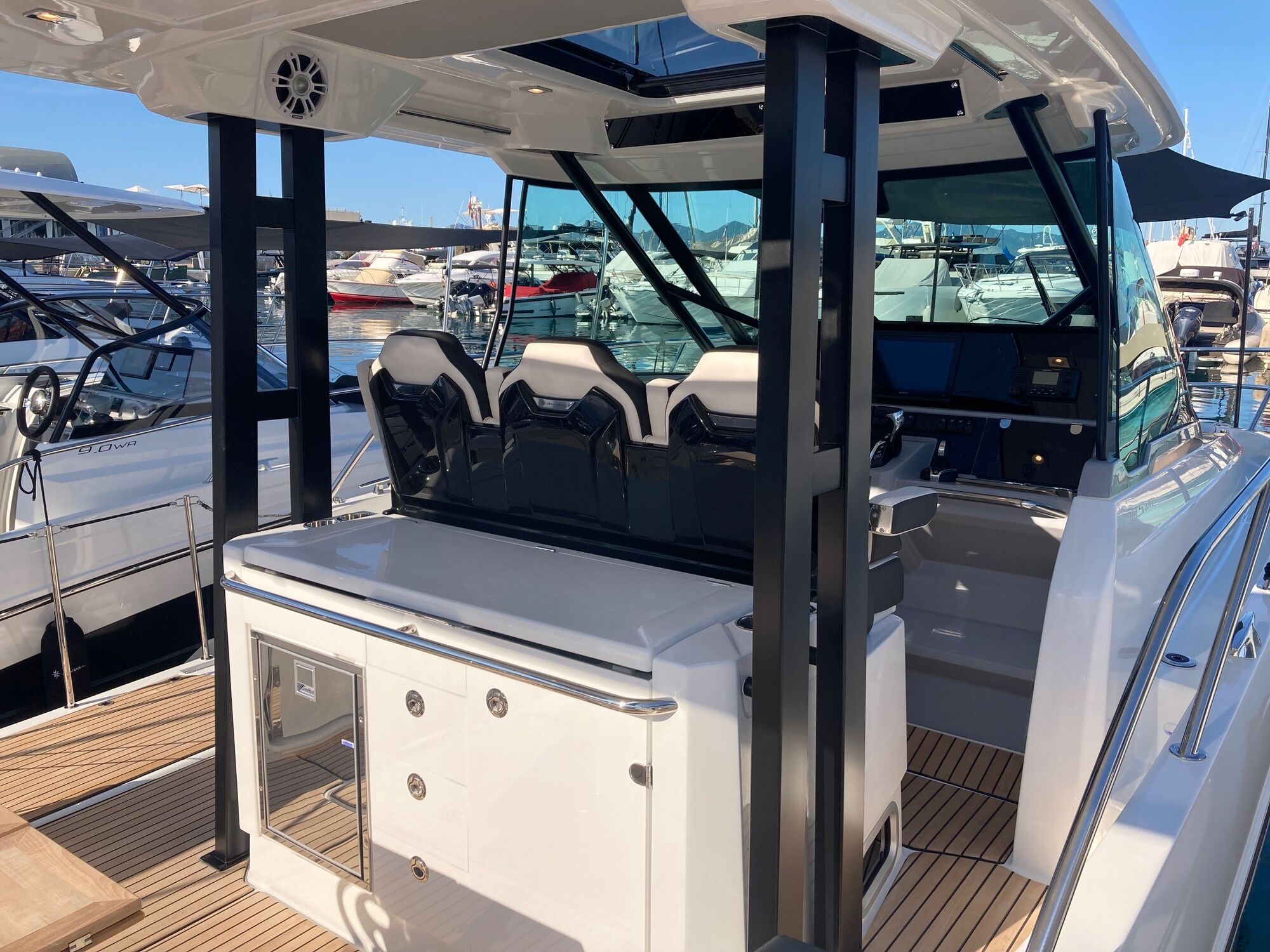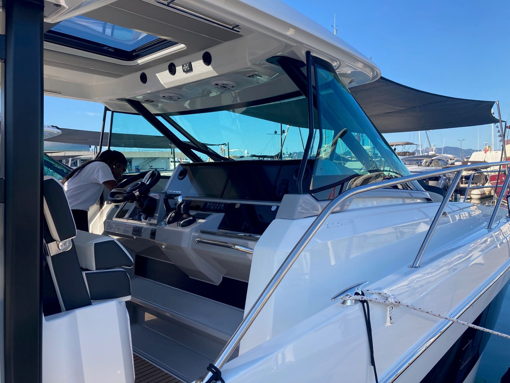 Le flagship de la gamme Cap Camarat va se doter cette année d'une version supplémentaire. Le Cap Camarat 12.5 WA Integral Windshield. Le pare-brise se connecte au Hard-Top, vous protégeant ainsi des projections d'eau et du vent. Cette version est idéale pour une utilisation dans les eaux du nord de l’Europe. Les fenêtres se connectent également côte à côte, ce qui offre encore plus de protection. Grâce à la trappe en haut de la vitre avant et à la trappe coulissante dans le toit, vous pourrez profiter d'une brise fraîche dans vos cheveux par temps chaud. Le Styling extérieur a aussi été retravailé avec des couleurs qui sont moins foncées pour qu'ils ne soient pas trop chaud pour toucher quand le soleil est dessus. Dès septembre 2024 ce modèle sera équipé avec la boiserie chêne sablé.
